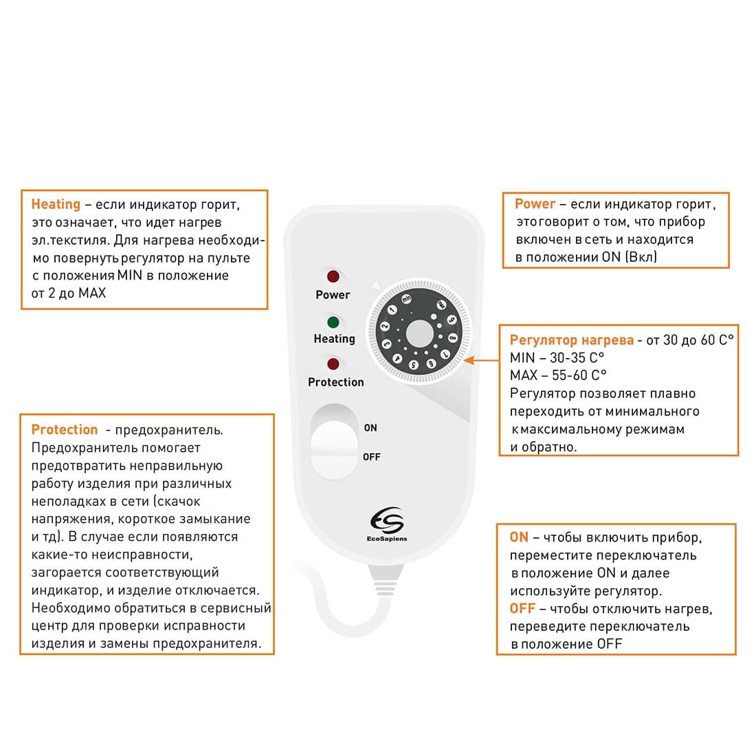 В общей сложности время работы не превышает 6 часов. Если вы использовали 1 режим, затем перешли на 2 или 3, то общее время работы составит 6 часов. При самостоятельном изменении режима, нагрев изделия происходит на самом максимальном параметре в выбранном диапазоне.