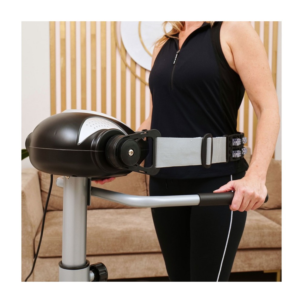 Удобство конструкции Массажёр имеет компактную и надёжную конструкцию. В качестве основания использована гальваническая труба диаметром 76 мм и толщиной 1,5 мм. Платформа выполнена из закалённого стекла. Максимально допустимый вес пользователя — 110 кг. В комплектацию входят 2 массажных пояса, которые крепятся к передней консоли. Для удобства и безопасности предусмотрены два поручня по бокам.